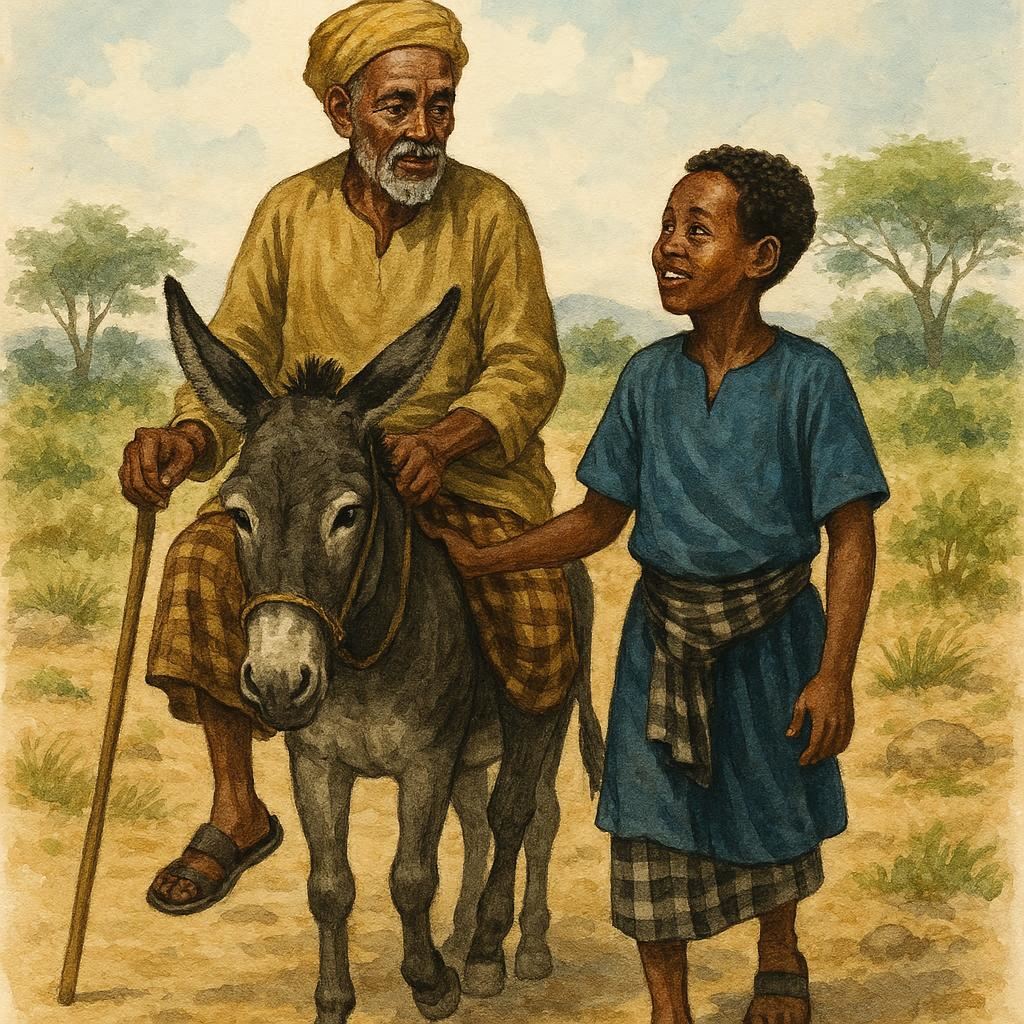 Markaas ayay hoos u deggeen labadooduba, dameerkii bay wada hogaamiyeen iyagoo lugaynaya. Markay suuqa soo galeen, dadkii way qosleen oo waxay yiraahdeen: