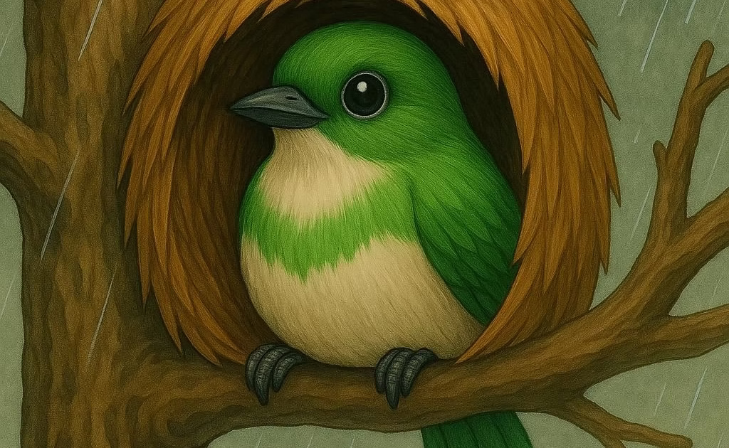 Balse shimbir yar oo lagu magacaabo Siman ma haysan meel ay ku hoyato. Waxay kor iyo hoos u baadi goobtay meel ay roobka kaga gabbato, balse meel ammaan ah ma helin. Roobkii iyo dabayshii ayaa sii xoogaystay, baalasha Simana way qoyeen.